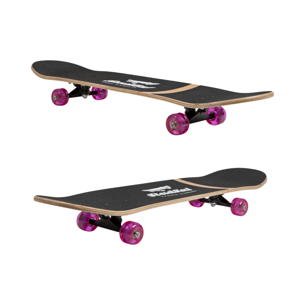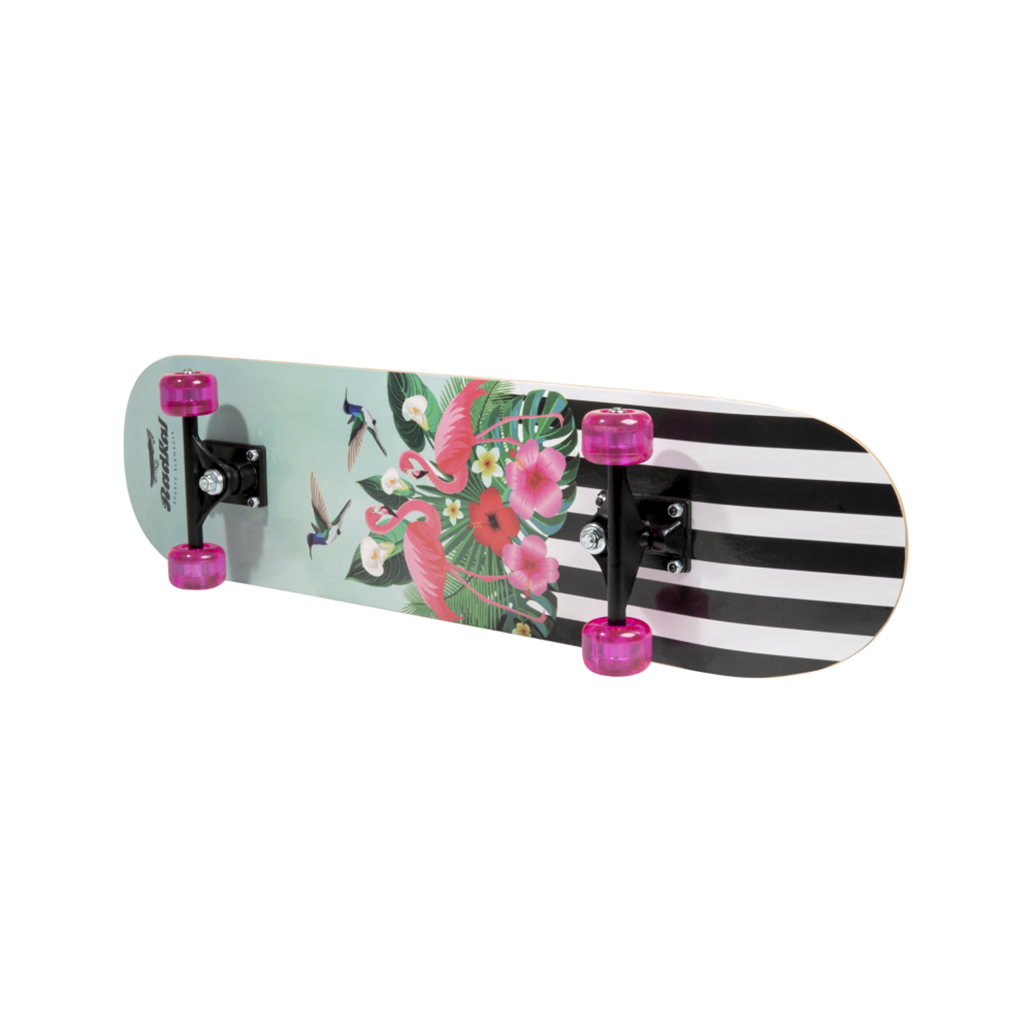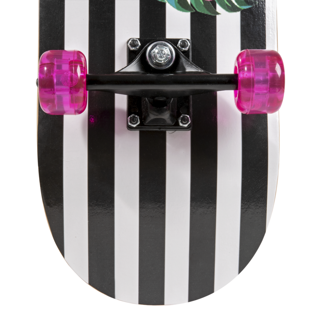Skate com lixa anti-derrapante que garante maior estabilidade. Acompanha adesivos customizáveis para personalizar o skate com o seu nome.