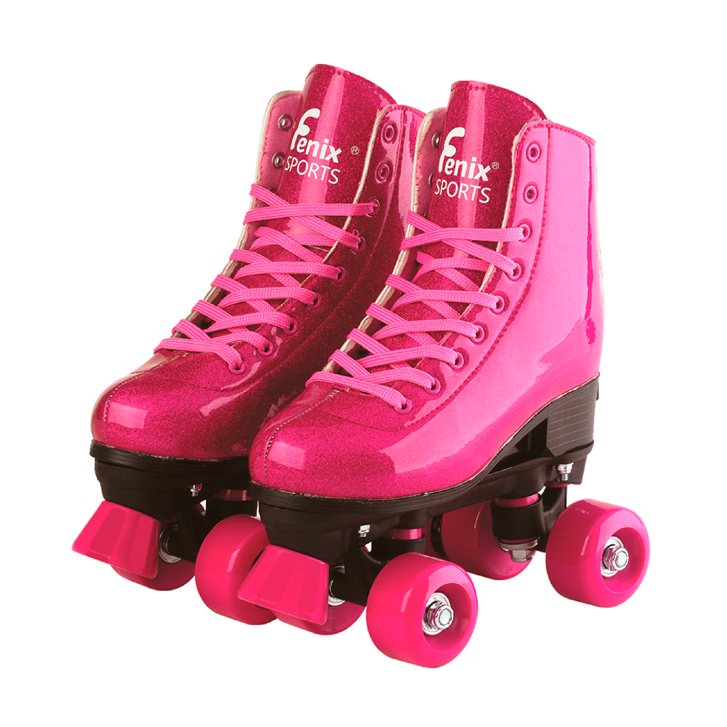 Patins 04 Rodas Brilhante Ajustáveis – Rosa com Glitter